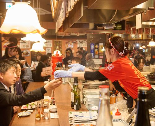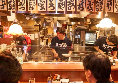 조리 공정을 가까이에서 볼 수 있는 현장감 넘치는 카운터석.혼자서의 바삭 마시고, 동료와의 조금 삼키기에도 최적입니다♪